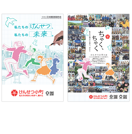 けんせつ小町活動を彩るロゴマークやグッズ、
