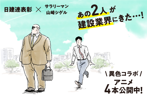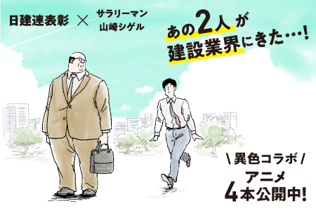 人気漫画「サラリーマン山崎シゲル」とコラボレーションしたショートアニメ。日建連表彰を切り口に建設業の仕事の醍醐味や魅力を伝える内容です。