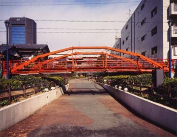 我が国初の国産錬鉄製の橋、それが楓川に架けられた弾正橋(現八幡橋)である。後に鉄道庁長官になった松本荘一郎設計、工部省赤羽製作所の製作であった。