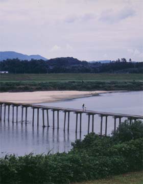 木橋の知恵を今に伝える流れ橋。それが矢作川に架かる小川橋である。洪水に抗うことは無益と観念し、復旧法をあらかじめ用意する。その素朴な思考法に学ぶところはないだろうか。