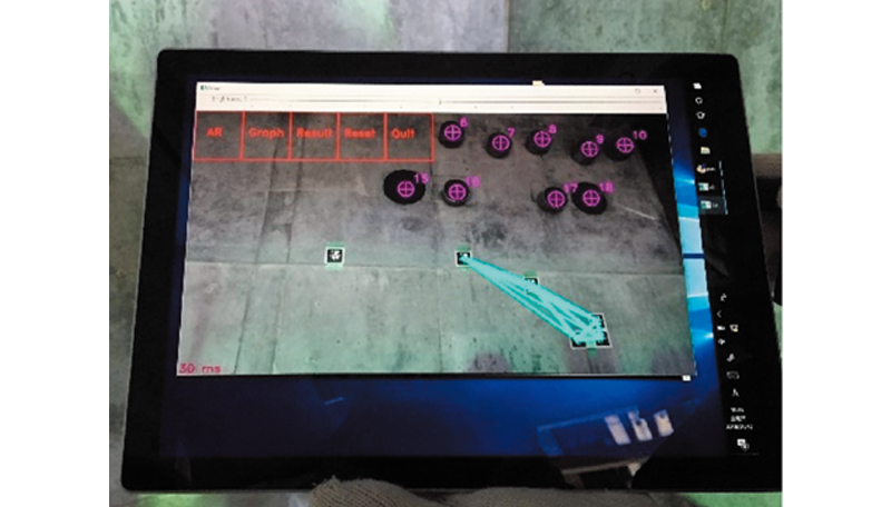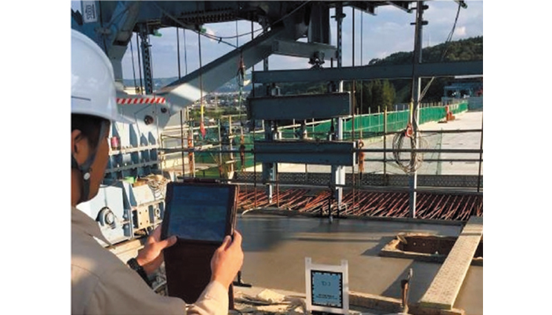 本システムでは、専用アプリにあらかじめ設計座標や上げ越し量などのデータを計画値として読み込み、これを基に自動的にTSが計測点を視準するように制御し、リアルタイムに計画値と計測値の誤差を画面表示できる。また、取得した計測データは無線でクラウド上に保存され、専用ソフトにより簡単に調書データとして出力できる。型枠セットシステムと同様の機能を用いて、橋面高さ測量もひとりで測量から記録ファイル作成の専用アプリを作成し、橋面の出来形管理の効率化を実現した。
