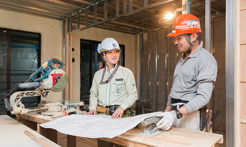 設計図面をもとに工事を管理する仕事です。工事に携わるたくさんの職人さんへの作業指示や、